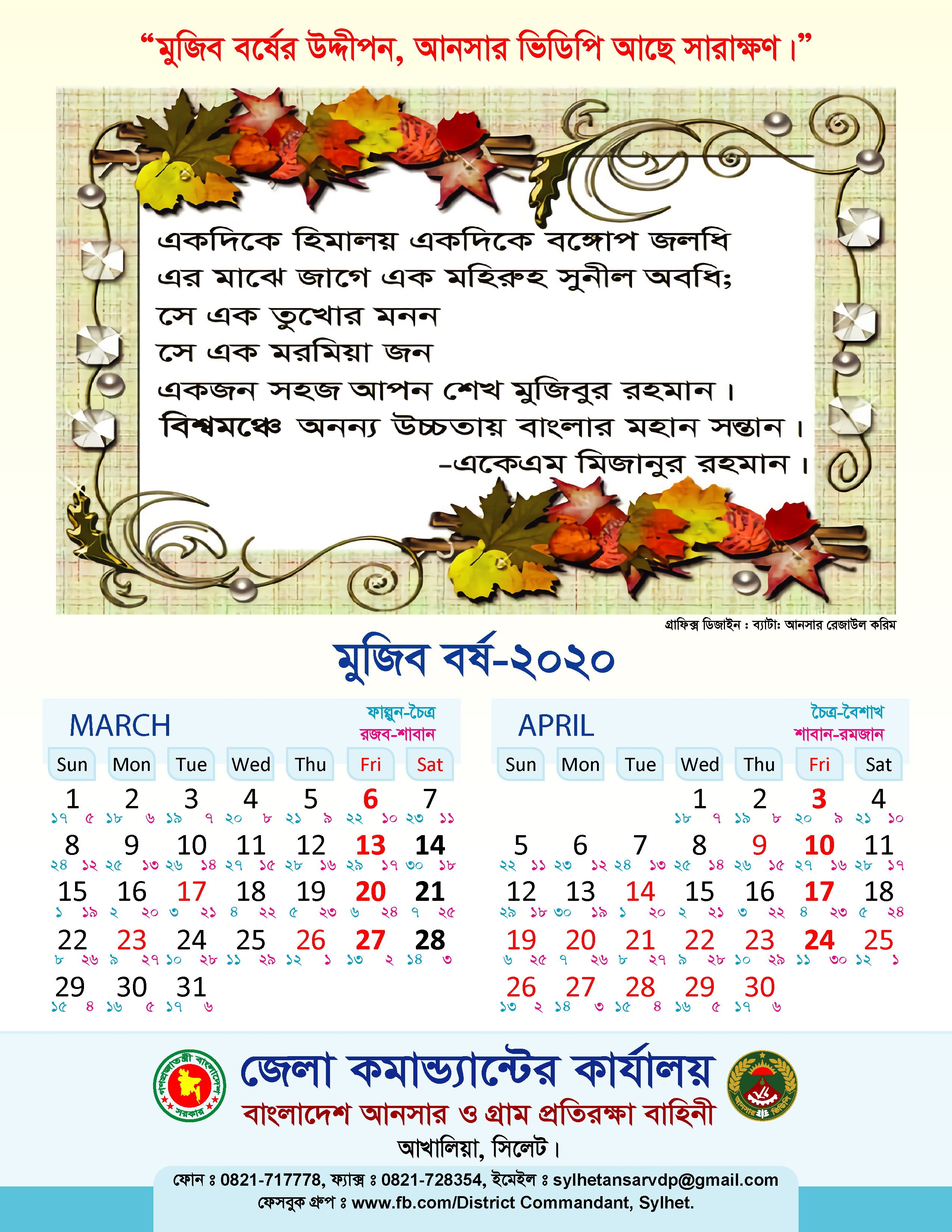 মুজিব বর্ষ উপলক্ষ্যে ক্যালেন্ডার ছাপানো হয়